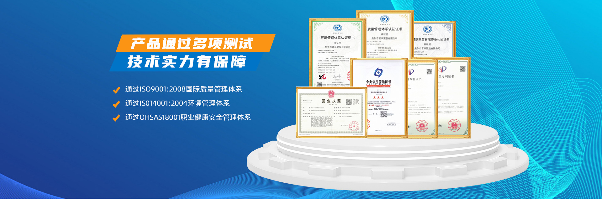 - 焦作市富泉塑膠有限公司,創(chuàng)立于1995年,是一家集研發(fā)、設計、生產(chǎn)、銷售為一體的大型管材企業(yè)。公司位于太極故里、黃河之濱一一河南焦作溫縣。公司占地128畝,現(xiàn)有職工210余人,其中具有中技術職稱的19人。生產(chǎn)、檢驗設備58臺(套),包括PVC實壁管生產(chǎn)線11套、PE實壁管生產(chǎn)線12套、HDPE雙壁波紋管生產(chǎn)線6套、PVC雙壁波紋管生產(chǎn)線5套,檢驗設備14臺(套)。主要產(chǎn)品有:Φ20mm-630mm、各種壓力規(guī)格的PVCU、PVC-M、PE給水管材,PVC-U節(jié)水灌溉管材,HDPE燃氣和礦用管材,DN200-800mm的HDPE、PVC雙壁波紋管及各種噴灌、滴灌工程材料。承接大中型市政供排水、飲水安全及節(jié)水灌溉等工程。 富泉塑膠公司重視產(chǎn)品的質量、安全、環(huán)保和節(jié)能,在同行業(yè)中率先完成了“新華節(jié)水產(chǎn)品認證”,全方面通過ISO9001:2008國際質量管理體系、IS014001:2004環(huán)境管理體系和OHSAS18001職業(yè)健康安全管理體系的一體化導入,并建立起規(guī)范的現(xiàn)代企業(yè)管理體系。公司以“質量”為先導,采用質量跟蹤、多環(huán)節(jié)把關的方法,組建具有行業(yè)水準的企業(yè)技術檢測中心,常年委托水利部節(jié)水灌溉設備檢測中心、河南省產(chǎn)品質量監(jiān)督檢驗院對產(chǎn)品跟蹤檢測,并由中國人民保險公司承保產(chǎn)品質量。公司連續(xù)多年被河南省水利廳確定為“安全飲水設備、節(jié)水灌溉設備”定點生產(chǎn)企業(yè),并獲得“中國名優(yōu)產(chǎn)品”“質量、服務、信譽AAA企業(yè)”“河南省**產(chǎn)品”“河南省水利企業(yè)”“河南省守合同、重信用企業(yè)”等榮譽稱號。 富泉塑膠公司堅持“用戶為上”的服務理念,長期以來,全方面關注客戶價值,不斷提升服務水平。服務隊伍常年為客戶的產(chǎn)品設計、施工、安裝提供合理的方案和全程細致、周到、**、快捷的技術服務。公司自成立以來,一直堅持以人為本的宗旨,塑造企業(yè)形象,并致力于新產(chǎn)品的開發(fā),憑借雄厚的技術開發(fā)能力,先進的工藝制造流程,嚴格的質量管理保證體系,優(yōu)良的售后服務網(wǎng)絡,已成為河南省大的飲水、灌溉及排水管材設備制造商。產(chǎn)品暢銷全國,而且還以公司雄厚的綜合實力在業(yè)界中占據(jù)著重要的地位。